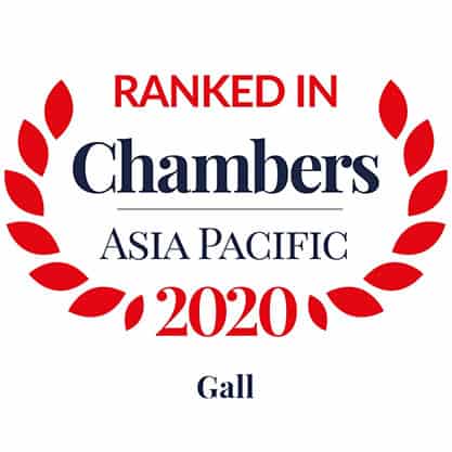 The Chambers Asia Pacific Guide 2020 has been released and Gall is ranked as a Leading Firm for Dispute Resolution (Band 4) and Family/Matrimonial (Band 3). Nick Gall (Band 3), Caroline McNally (Band 1) and Andrea Randall (Band 3) are named as Leading Individuals and Chris Wong as a Recognised Practitioner.