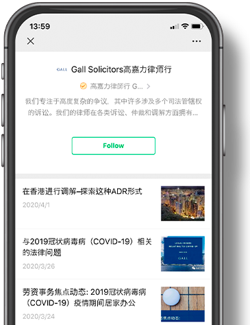 从电子信箱直接接收高嘉力律师行的新闻和法律更新