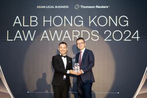 Executive Partner Chris Wong is pictured receiving the award on behalf of the firm. Chris is the firm’s practice leader of China related disputes under Hong Kong law.